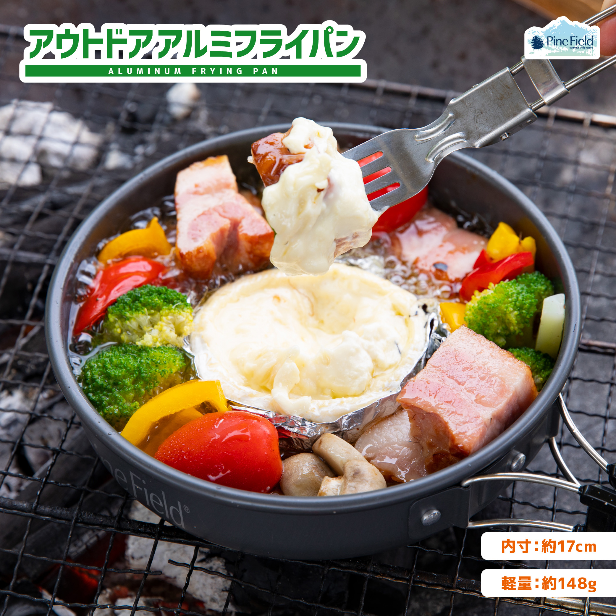 アウトドア アルミフライパン Pine Field 直径17cm 折りたたみ式 直火OK コンパクト 軽量 登山 キャンプ アウトドア グランピング BBQ レジャー 料理 調理
