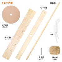 (回転棒・ハンドル板・火きり板・はずみ材・固定用シャフト・紐・発火剤(麻紐):各1個)