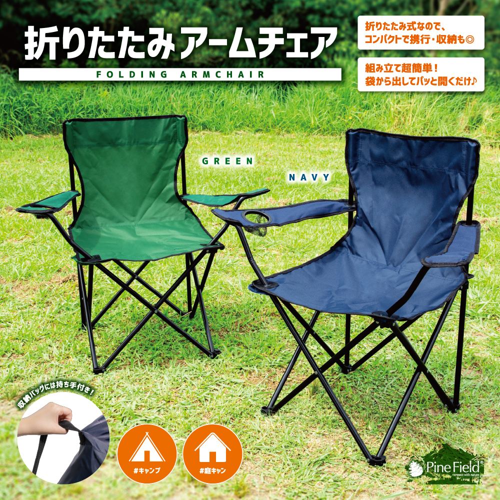 折りたたみ アームチェア Pine Field 専用収納袋付き 全2色 椅子 チェア キャンプ アウトドア ピクニック BBQ 登山 備災 フォールディング パイピング
