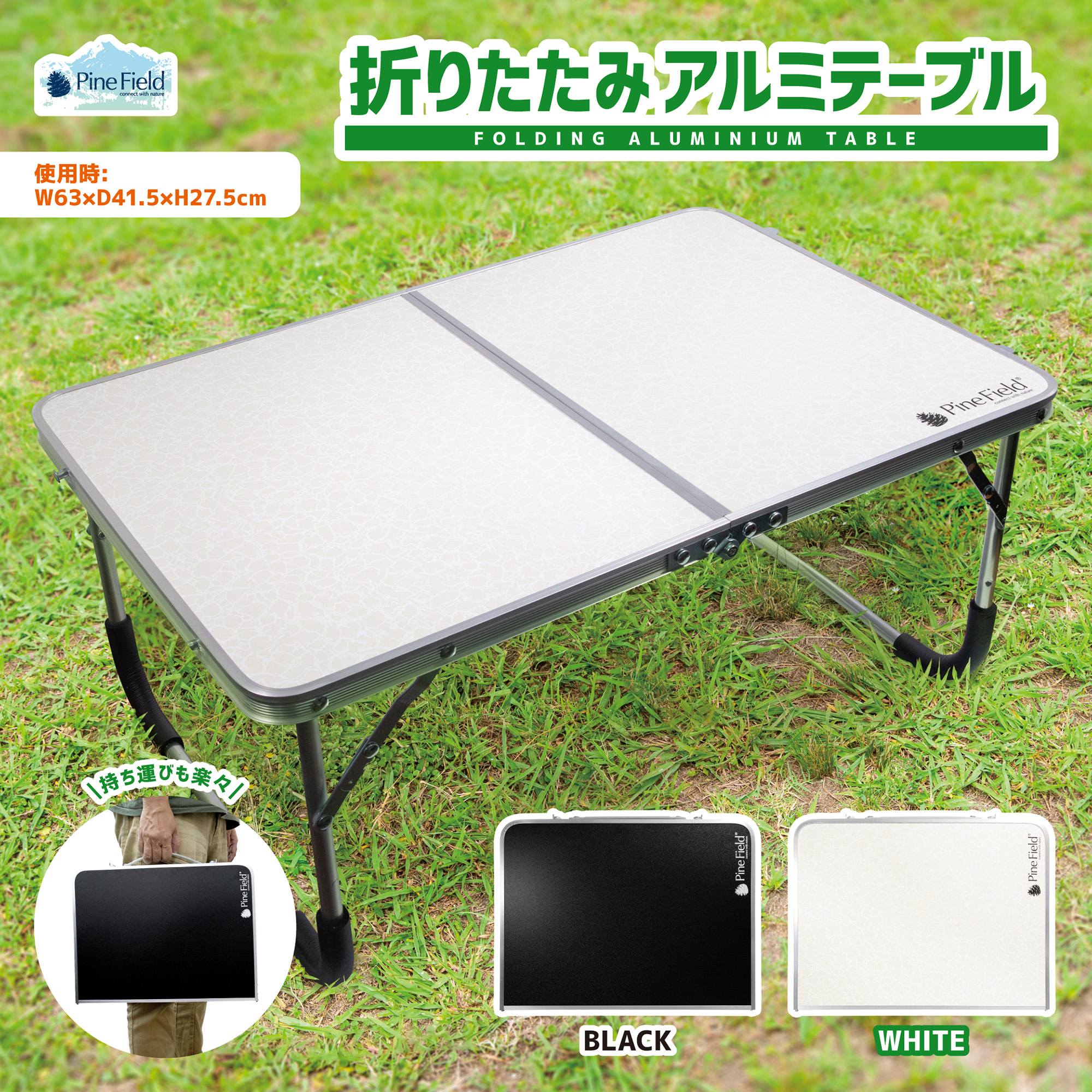 折りたたみ アルミテーブル Pine Field 選べるカラー アルミ製 軽量 キャンプ アウトドア ベランピング グランピング BBQ ピクニック お花見 防災 ローテーブル