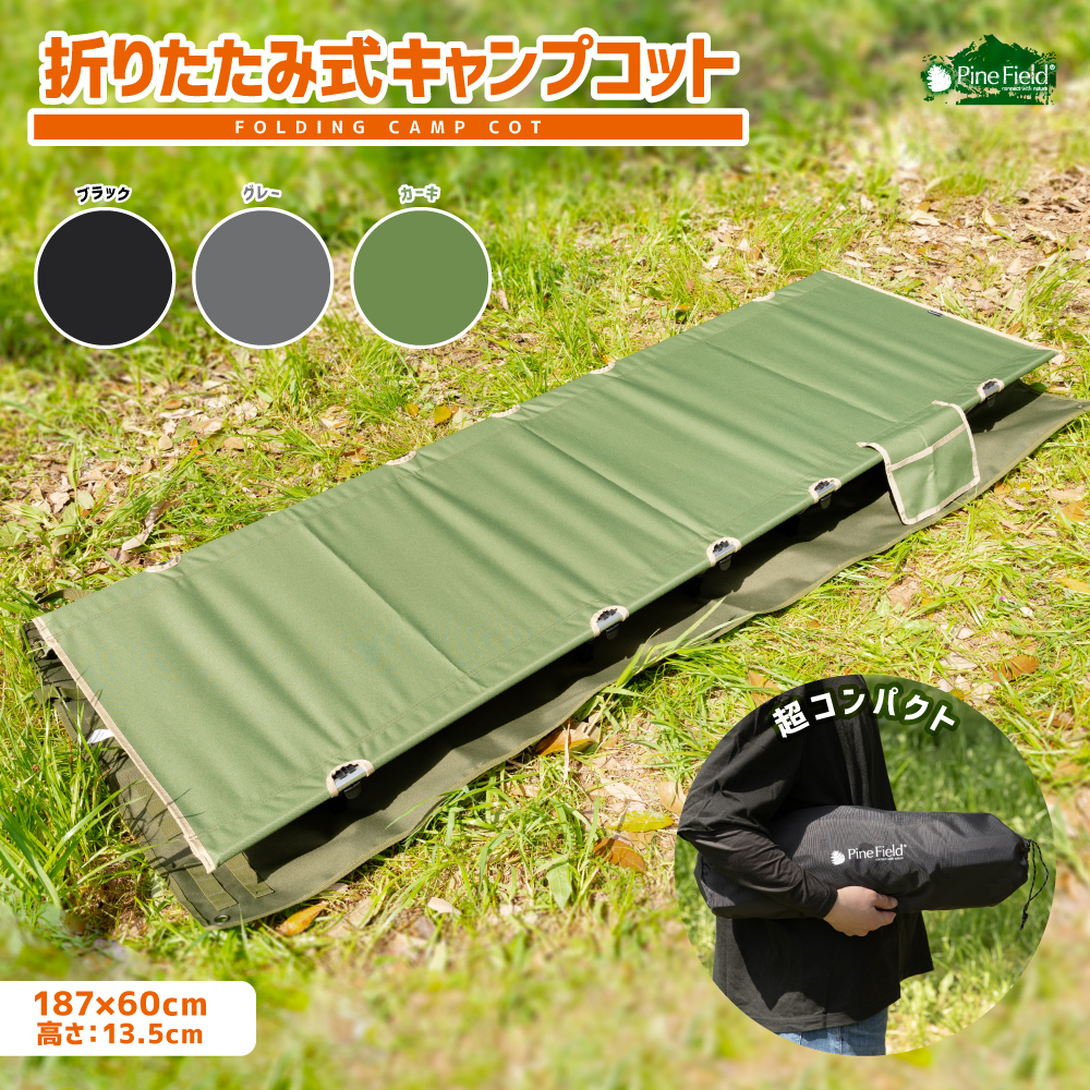 折りたたみ式 キャンプ コット Pine Field ロータイプ 収納袋付き 選べるカラー 耐荷重150kg 軽量 コンパクト 組み立て キャンプ アウトドア 防災 備災