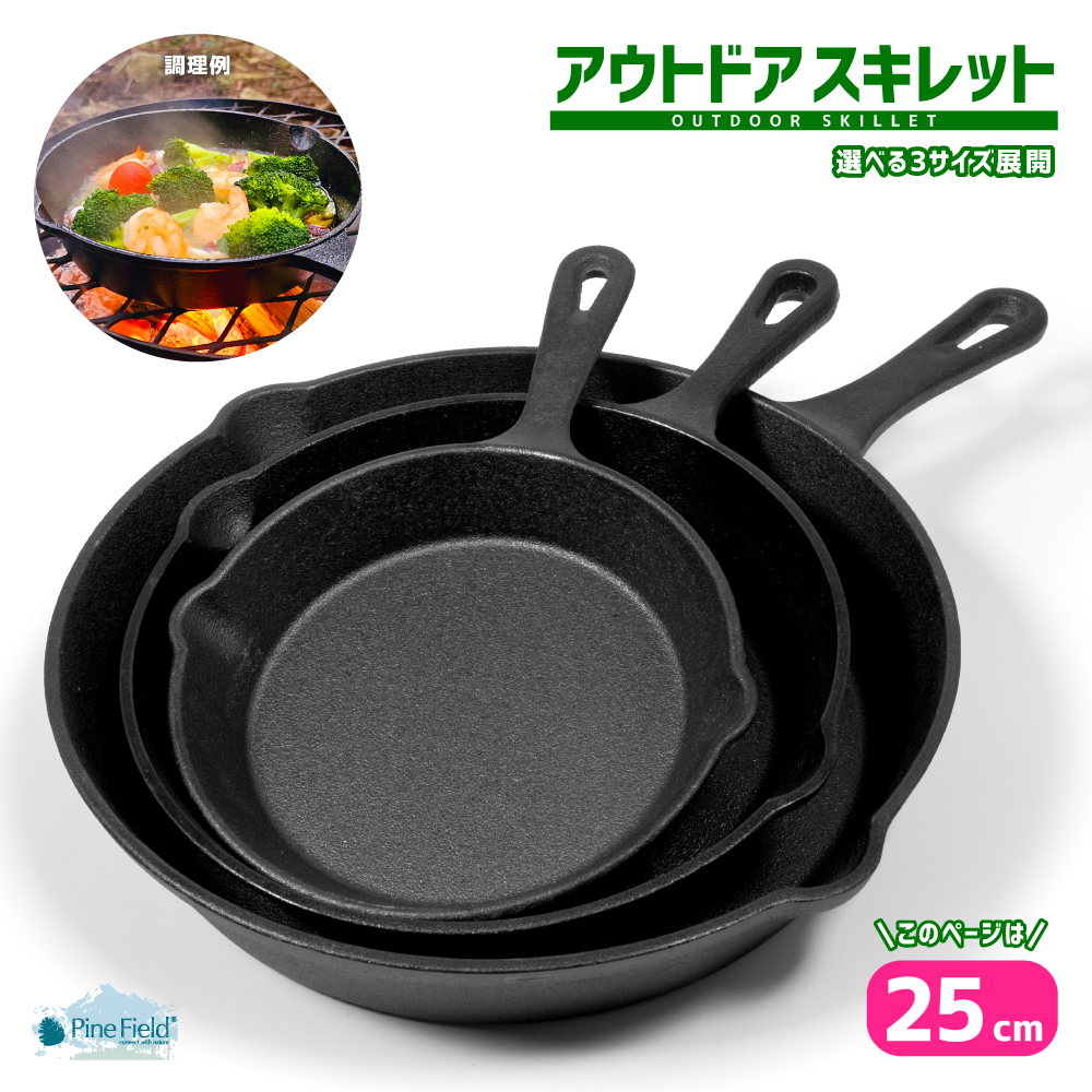 アウトドア スキレット 直径25cm Pine Field 直火 キャンプ グランピング BBQ レジャー ソロキャン ファミキャン フライパン 本格調理 料理 調理 鋳物