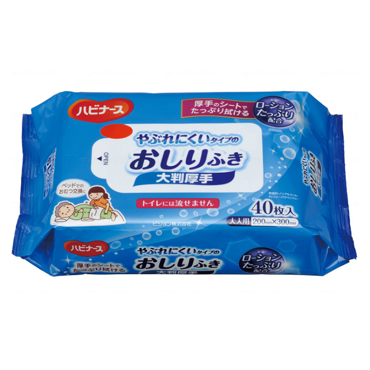 おしり拭き ハビナース やぶれにくいタイプのおしりふき 大判厚手 / 11117 40枚 からだふき お尻拭き ウェットティッシュ【返品不可】 // T0941