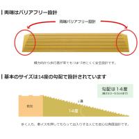 ・基本のサイズは14度の勾配で設計されています。歩く人も、車イスを押してもらって出入りする人にも安心な角度設計です。