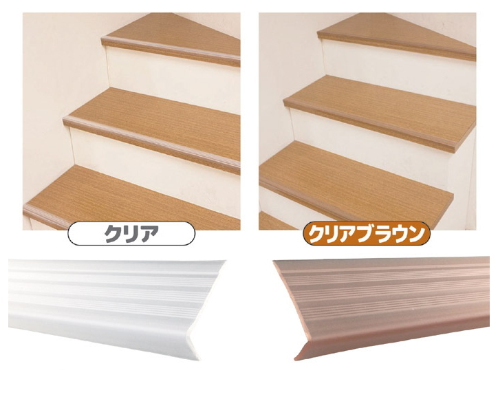 滑り止め機能はそのままに、透明タイプに仕上げた階段専用滑り止めなので、違和感無く設置いただけます。階段の角に合わせて貼るだけ、とても簡単。上面には3本の溝をデザインしてますので滑りにくくなっています。単に「透明タイプ」ということだけでなく、安全第一の商品であるからこそ、メーカーは品質にこだわり、一つ一つ丁寧に作られているそうです。透明タイプの両面テープを使用していますので階段になじみ、貼っても目立ちません。