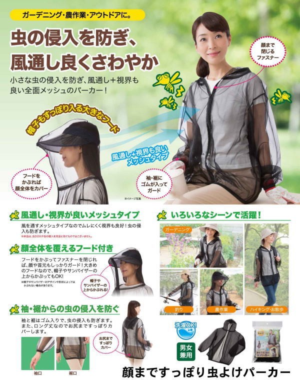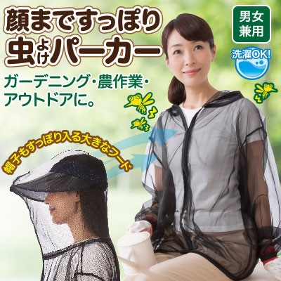 顔まですっぽり虫よけパーカー 虫よけ 虫よけメッシュパーカー 虫除け 虫よけネット 虫除けネット 防虫ネット 首元 顔 ガード