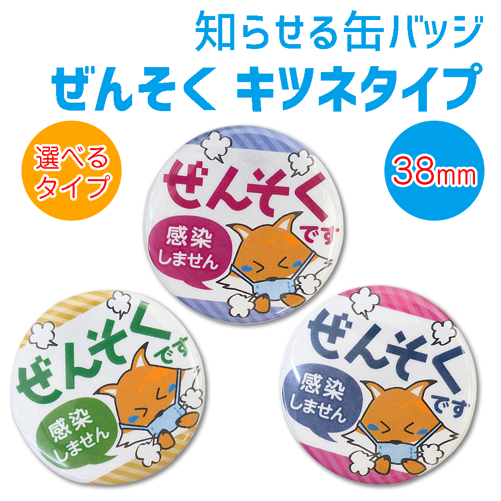 『缶バッジ ぜんそく イラスト キツネ柄 3色』