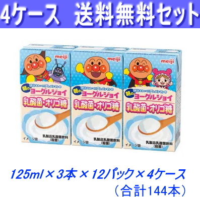 アンパンマンの朝のヨーグルジョイ乳酸菌・オリゴ糖125ml×3本×12パック×4ケース 合計144本 送料無料!常温保存可能
