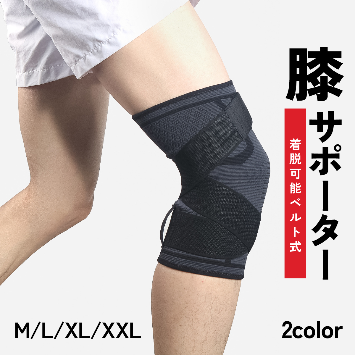 ・2本の加圧式ベルトをクロスさせて調節する、膝サポーターです。