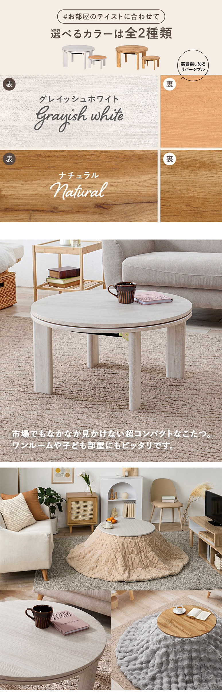 | 【 カジュアルコタツ バリエーション 】 コンパクトタイプ 直径68cm 直径80cm コンパクトタイプ 直径68cm こたつ+うす掛ふとん 2点セット 直径80cm こたつ+掛敷ふとん 3点セット |