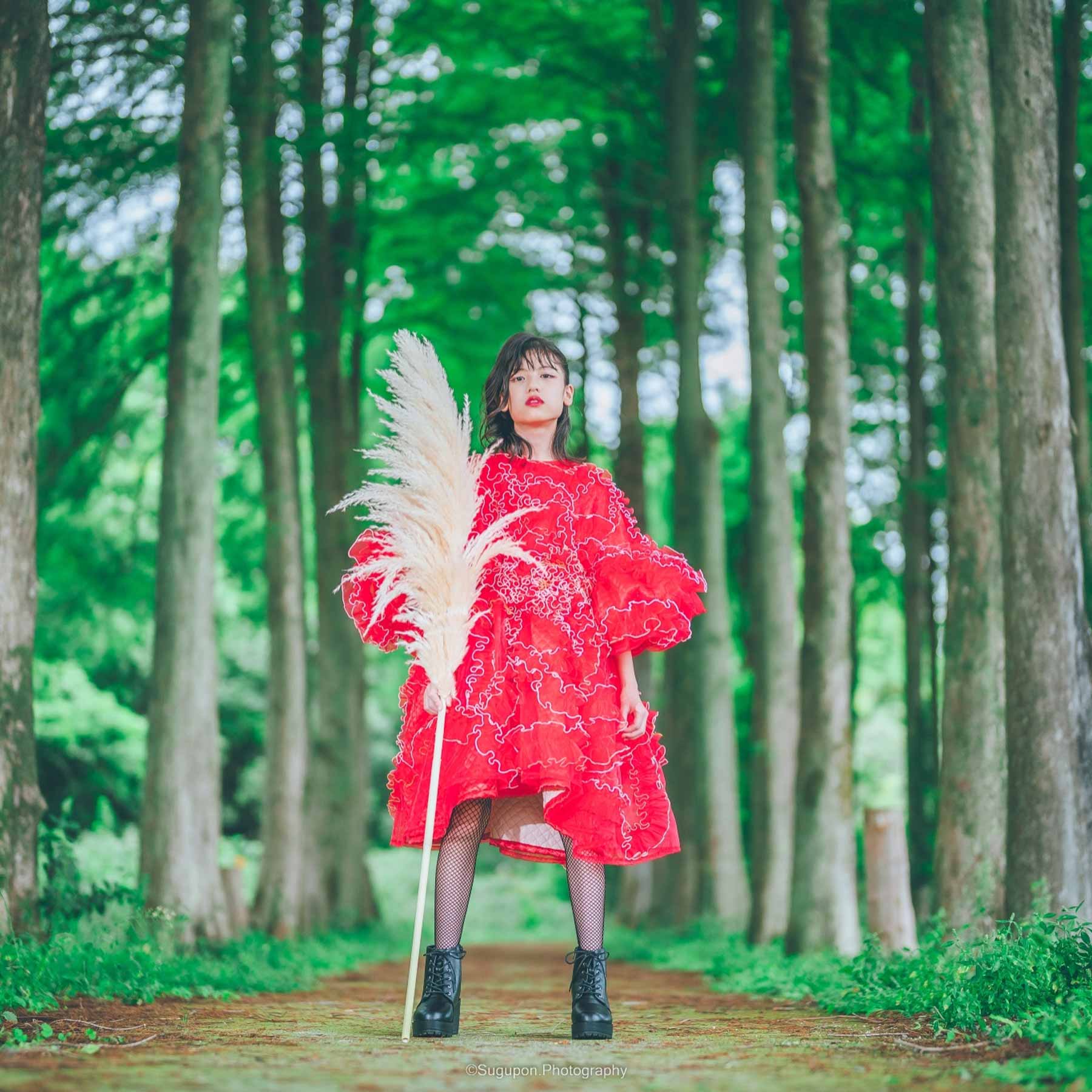 内側には同じく真っ赤なキルティングが使われたドレスがセットされていて、ハリがあるので内側からふわっとキレイに広がるシルエットの一着です。