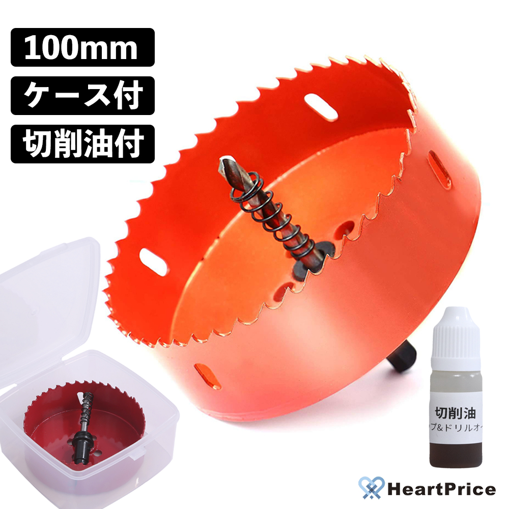 | セット内容 | バイメタルホールソー100mm 付属品:切削油 約8ml(不水溶性切削油)透明収納ケース付 |