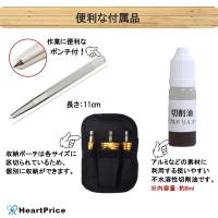 【充実の付属品】1. 切削油(AZ製 水溶性) 2. センターポンチ(下穴あけ用) 3. 専用ポーチ(持ち運び・保管用) |