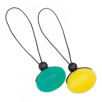 おうち時間に、テレビを見ながら簡単握力トレーニング!たまご型なので、普通のボールより握りやすいです。2種類の硬さで好みに合わせて使用できます。落下防止のストラップ付!