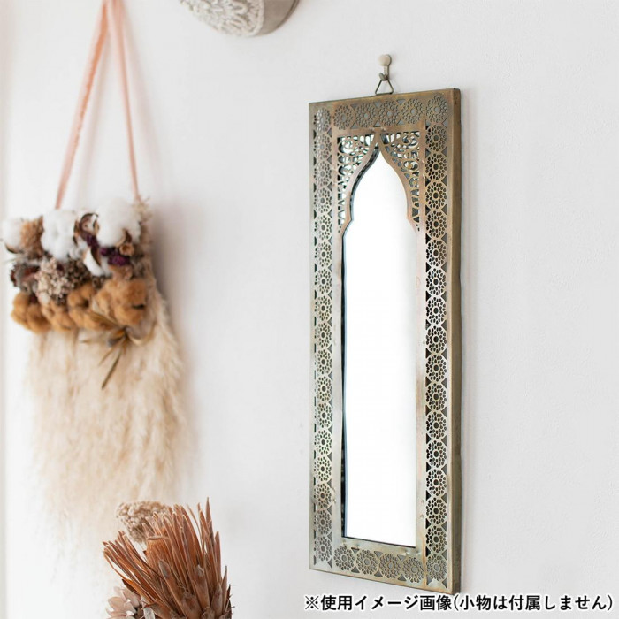 繊細にカットされた模様が美しいハンギングミラー。オリエンタルな雰囲気がお部屋の華やかなアクセントに。壁に掛けて使用したり、棚の上などに立てかけてインテリアとしてもオシャレ。お部屋のインテリアを一段と引き立てます。
