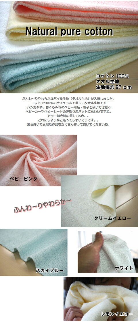 【国産】ナチュラル ピュア コットン/ふんわりやわらかパイル生地/タオル生地/タオル/スタイ/おくるみ/ベビー用品/生地/布/コットン