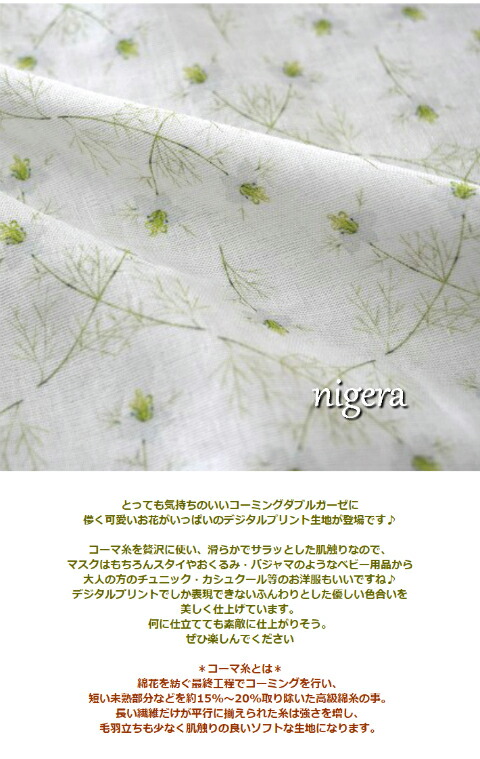 コーミングダブルガーゼ デジタルプリント nigera ニゲラ コットン ダブルガーゼ 生地 布 マスク 小物 インテリア コットン100% 洋服 花 マスク