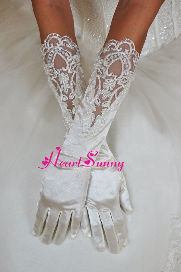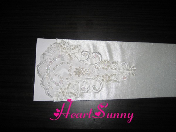 ウェディンググローブ ホローレースサテン スパンコール飾りロング S011