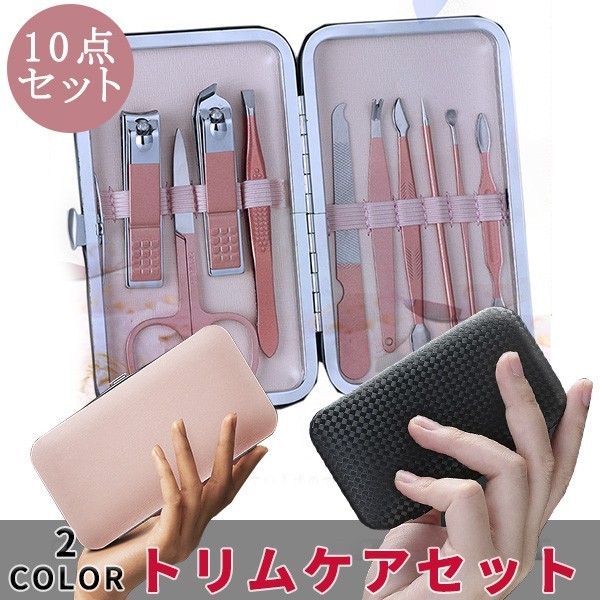 ジェルネイル ネイルケア 爪切りセット 10点セット 爪やすり マニキュア 多機能 ステンレス ニキビ取り 眉用ハサミ 眉用クリップ 耳かき甘皮切りなど