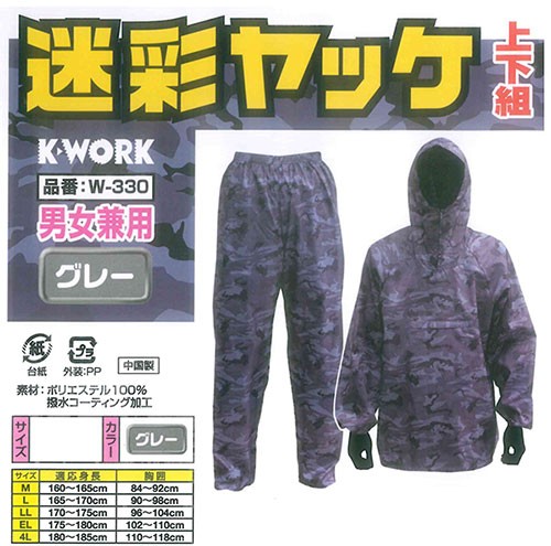 ケイワーク 迷彩ヤッケ W-330 上下セット グレー |
