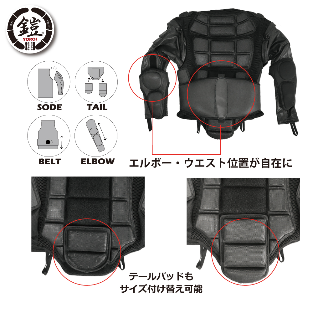 成長の早いお子様の身体に常にフィットする画期的なプロテクター。