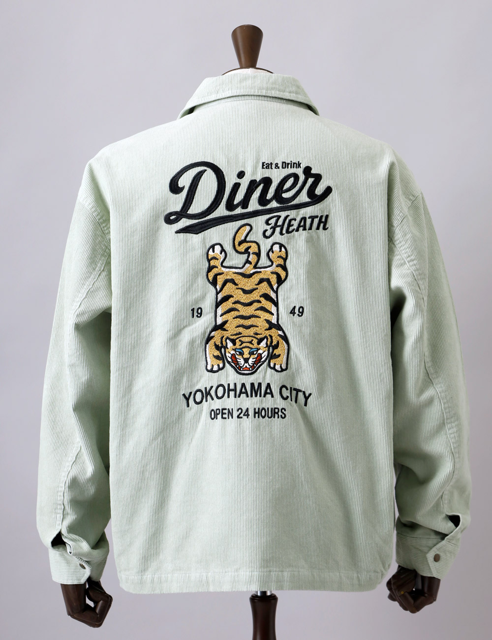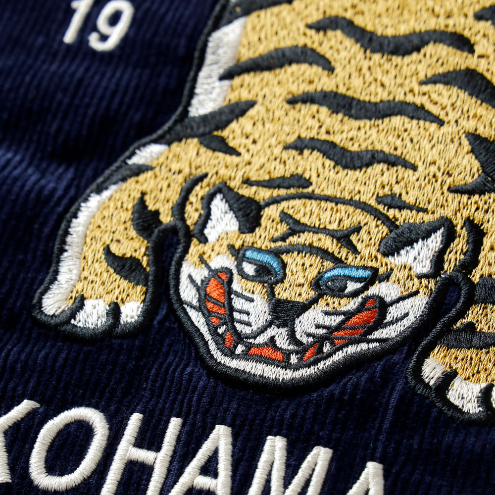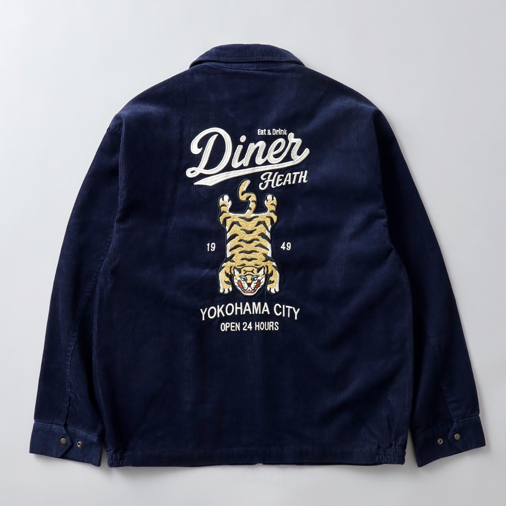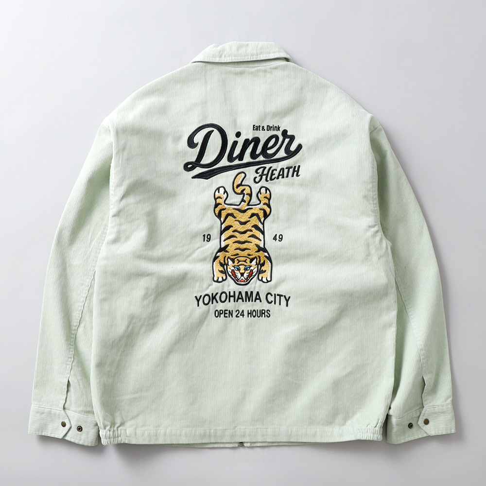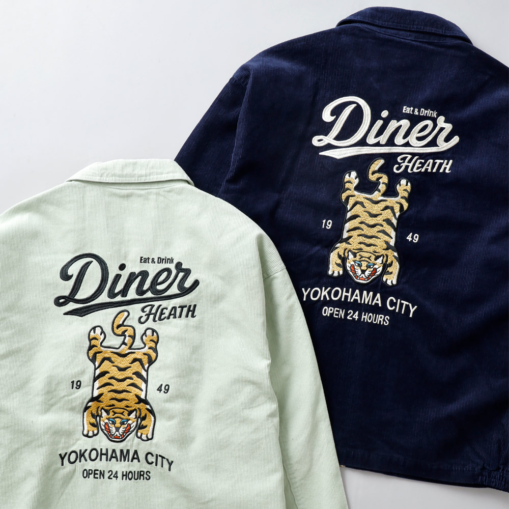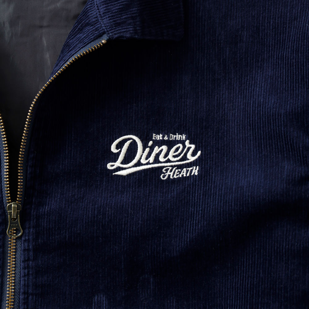 港町・横浜の裏通りにある、架空のアメリカンダイナーのショップサインをイメージして刺繍に落とし込みました。