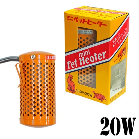 寒い季節に備えて快適に。 ヒーターのワット数はお部屋の温度によって選びます。 もちろんケージの大きさにもよりますが、真冬にお部屋の温度が何度まで下がってしまい、そのお部屋の中のケージを何度まで暖かくしたいかによって決まります。 目安としまして、 大きさが60cmx45cmx45cmのケースで使用した場合、 20Wのヒーターで室温プラス4度です。 ケースよりもケージの方が保温力が落ちてしまうことと、換気・通気のため、ケージの1面は開いている状態でご使用いただいた方がよいことから、上記温度よりも低くなると考えてください。 また、このヒーターは暑くなった時に電源が切れる機能がありませんので、真冬の室温に合わせてワット数を決めた場合、それより室温が高い時に暑くなってしまったり、1日の温度変化に対応できませんので、サーモスタットとの併用をお勧め致します。 電球と同じような形をしていますが、保温球が明るくならずに熱くなります。 保温球にさわったらもちろん熱いですから直接触らないようにスチール製のカバーが付いています。 保温球のワット数は20W、40W、60W、100Wの4種類あり、20Wのみカバーサイズが小さく、あとの3種類は同じサイズなので、100Wのペットヒーターに60Wや40Wの保温球を取り付け使用することができます。 コードには本体から50mm金属リングの保護が付いています。 このヒーターには温度調節の機能がありません。 適温を保つためには、サーモスタットという器具が必要になります。 ペットヒーター用のサーモスタットは(アサヒ電子サーモスタット)15度〜40度内で温度設定できます。 これをいっしょに使うことで、簡単に適温が保てます。 | 安全・確実・取付簡単 寒さに弱いミニペットもこれで安心! カナリヤ・手のり文鳥等の小鳥、ミドリガメ・カメレオン・ハムスター等のミニペットの保温に最適です。 <特徴> 1、保温電球は明るくならないため、ペットの安眠を妨げません。 2、この保温電球には、特殊被膜加工をしていますので、割れにくくなっています。 (但し、電球に水が掛からないよう充分注意して下さい。) 3、小鳥には、夜間かごを布などで覆って保温すると効果的です。 (この場合は、かごの片側を換気のため、必ず開けてご使用下さい。) 4、ペットが噛んだりしてコードが傷つかないようにするため、本体とコードの接合部分に50mmの「いたずら防止リング」を付けてあります。 5、飼育かご等にフック金具をかけてご使用の場合、本体下方の穴にハリガネ等を通し、本体とかごを固定すると器具がより安定致します。 <特長> 1、取付けは普通電球と同じで簡単です。 2、一部分だけが暖かくなる保温器とちがってカゴ、小屋全体がソフトに暖かくなります。 3、熱源の保温電球がスチール製のカバーの中に入っていますので、安全で火災等の心配はありません。 4、1.5mのコードがついています。本体から50mmまでは金属リングで保護しペットがいたずらしても感電しない安全設計です。 5、保温電球は電熱器の二クロム線の明るさ程度でペットも安眠できます。 |