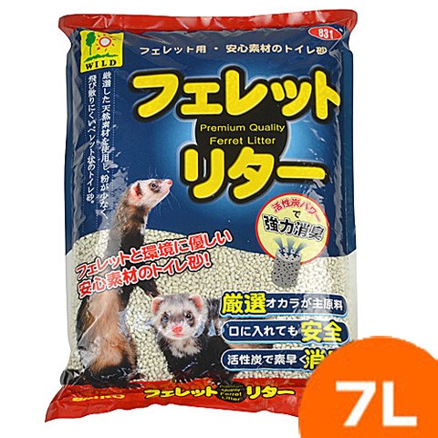 フェレット専用のおトイレ砂です。 おからをベースに活性炭の消臭力がプラスされています。 おトイレに流して捨てることもできますので、こまめなおトイレ掃除に便利なおトイレ砂です。 | フェレットと環境に優しい安心素材のトイレ砂! フェレットリターは厳選されたオカラをベースに消臭効果のある活性炭をプラス。 フェレットにやさしく、飛び散りにくいペレット状のトイレ砂です。 フェレット用・流せる安心素材のトイレ砂。 厳選した100%天然素材を使用し、粉が少なく、飛び散りにくいペレット状のトイレ砂。 ・トイレに流してもOK ・口に入れても安全 ・活性炭で素早く消臭 <ご使用方法> フェレット用のおトイレの底に一面敷かずに少量敷き、様子を見ながら徐々に増やして、底から1〜1、5mm位の厚さになるまで敷いてください。 別のトイレ砂からフェレットリターへの切り替えは、少しずつ混ぜながら行ってください。 おしっこ、フン等によって固まった部分をスコップ等を使い取り除き減った分だけ補充してください。 |