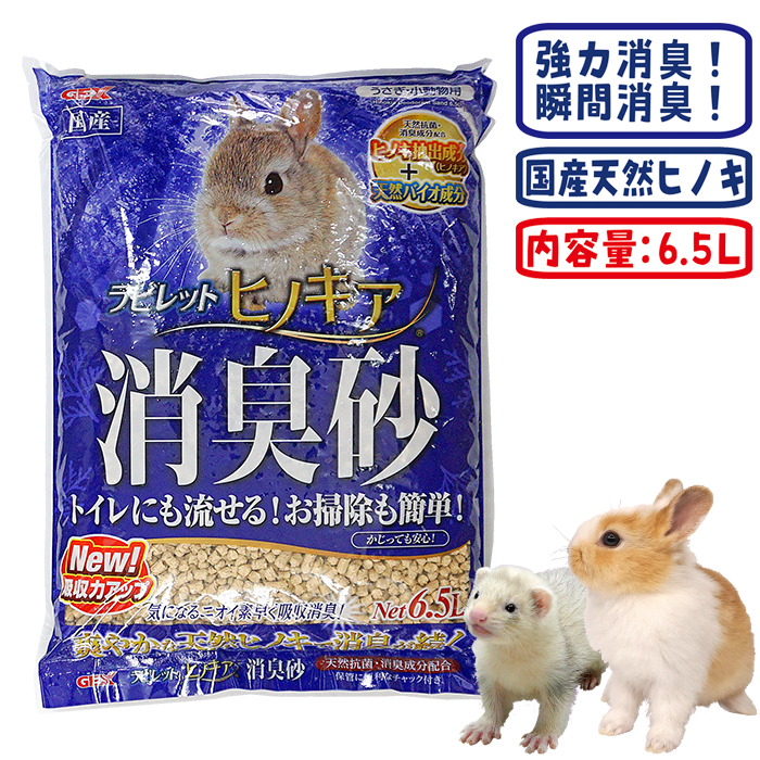 『ヒノキア消臭砂』が新しくなりました。 「消臭力」、「吸収力」がアップして、使いやすいチャック付き袋入りとなりました。 | 天然ヒノキで強力消臭!瞬間消臭! かじっても安心!国産ヒノキ100% ヒノキア消臭砂は、香り高き国産天然ヒノキを主原料とし、更に天然抗菌・消臭成分を配合。 ヒノキの爽やかな香りでトイレの嫌なニオイを瞬間消臭! 【天然抗菌・消臭成分を配合】 ヒノキから抽出された「精油」を食品由来成分原料でカプセル化した抗菌・消臭成分を配合。 さらににニオイの原因になる雑菌の繁殖を抑える天然バイオ成分をプラスしました。 【臭いオシッコ瞬間消臭】 ヒノキ原料の粒子を均一に揃えた特殊製法。 オシッコを素早く吸い込み、ニオイを閉じ込めます。 トイレにオシッコが溜まらないから、汚れの付着も防ぎます。 【国産天然ヒノキ100%だから、うさぎ・小動物がかじっても安心!】 製材所・木工所・木材加工所から出た、ヒノキの木くず(おがくず・かんなくず)や、間伐材を原料としています。 なんでもかじるうさぎ・小動物の習性を考えて、接着剤が含まれている、集成材から出た木くずは使用していません。 ●集成材とは・・・ 天然木から一定の大きさに切断した板を乾燥させ、節や割れなどの欠点となる部分を取り除き、接着剤で結合した木材です。 【水洗トイレに流せて片付け便利】 水にさっと崩れやすく、100%有機成分でつくられているトイレ砂なので、水洗トイレに流せます。 |