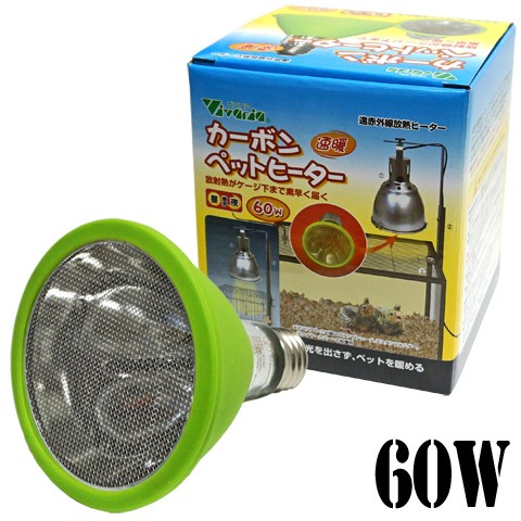 保温球の外側にシリコンカバーの付いたランプ型ヒーターです。 もし触ってしまった時でもカバー部分であれば火傷をせずにすみます。 明るくなるほどではありませんが、多少赤っぽく光が出ます。 暗い部屋では通電していることを目で確認できます。 ケージの外側から設置して動物たちがヒーターに触れないようにしてください。 | 放射熱がケージ下まで素早く届く 効率的に飼育ケージ内の空気、シェルター、床材を暖め、すばやくペットの身体を暖めます。 昼用、夜用どちらにも使用でき、白熱保温球の様に光を出さないので、夜間の光を嫌うペットに最適な保温器具です。 (明るくならない程度の光が出ます。) ※厳寒期など、目的温度に達するまで時間がかかる場合や温度が上がり切らない場合があります。 他の保温器具との併用をおすすめします。 ※ペット飼育専用のクリップスタンドかランプカバーでご使用ください。 |