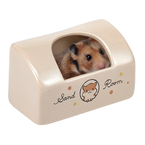 スリムなデザインの陶器製のおトイレ・砂浴び場です。 砂浴び用となっておりますが、ゴールデンハムちゃんが、砂浴びをするには、狭いです。 おトイレや寝床としてのご利用の方が向いていると思います。 ジャンガリアンなどの小型のハムちゃんであれば、砂浴び場としてもよいですね。 陶器製なので齧られてしまうことがなく、しっかりとした重さがあるのでハムちゃんがおトイレをずらしにくくなります。 | 砂を掻いても飛び散りにくい横長形状で、トイレにも砂浴びにも使えます。 陶器製なので汚れがこびりつきにくく、かじる・動かすなどのイタズラも防ぎます。 【特徴】 ・ハムスターの砂浴び場やトイレに使える陶器製容器です。 ・左右に砂を掻いても砂が飛び散りにくい横長形状です。 ・陶器製なので衛生的で、かじる・動かすなどのイラズラも防ぎます。 【対象動物】 ゴールデンハムスター ※ペットの種類・大きさ・性質に合わせて様子をみながらご使用ください。 ■本品は陶器製の為、重量、寸法、形、色に多少の差異が生じる場合があります。ご了承ください。 |
