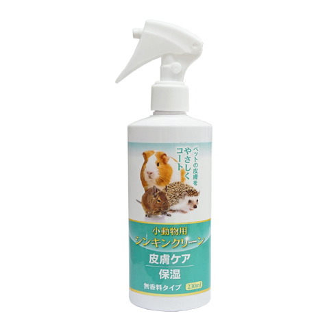 小動物さんたちの毛をわけながら皮膚の気になる部分にスプレーし、よくもみ込むように皮膚になじませてください。 使用量の目安としては、モルモットちゃんの背中部分くらいの広さであれば、スプレー1〜2回くらいになります。 ペットの皮膚をやさしくコート 皮膚ケア・保湿 無香料タイプ 国産 対象動物:モルモット、デグー、ウサギ、ハリネズミ、チンチラなど | 小動物(デグー・モルモットなど)は私たち人間とちがって毎日シャンプーできないので、汚れをそのままにしておくと、かゆみの原因となり皮膚の角質がはがれ落ち保湿成分が減少します。 本品は、皮膚の表面をコートすることで、保湿成分を持続させます。 <特徴> ・本品は、皮膚の保湿を行い皮膚をケアします。 ・本品に配合したキトサンは天然由来成分で皮膚に皮膜を形成することで長時間保湿効果を持続させます。 <使用方法> 2〜3日に1回程度、皮膚・被毛にスプレーしてください。 本品を皮膚(特にお腹周り)・被毛に湿り気を帯びる程度噴霧してください。 または化粧コットンに本品を浸み込ませて皮膚・被毛の汚れをふき取ることもできます。 汚れがひどい場合には、1日に1回使用してください。 |