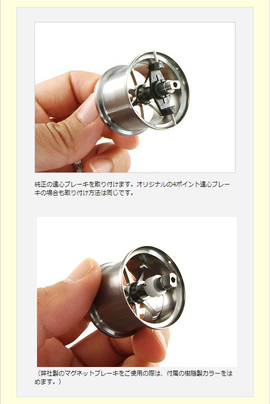 遠心ブレーキ、またはマグネットブレーキを取り付けて、組み込みが終了です。