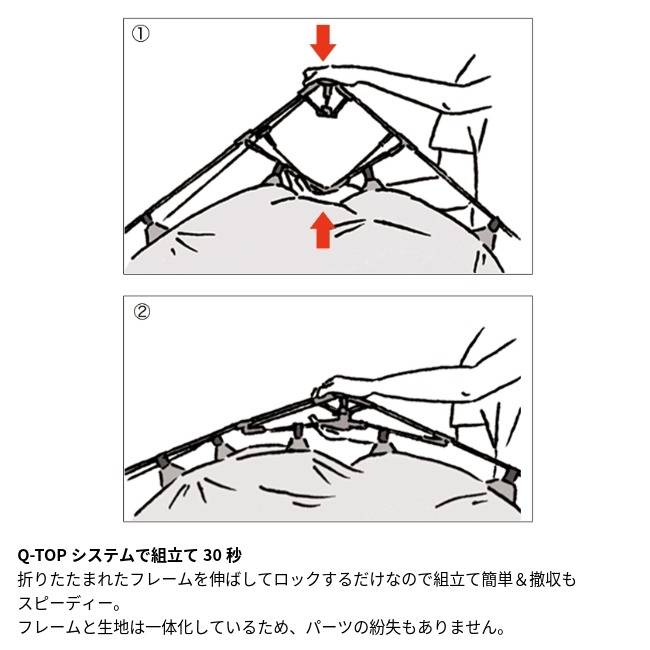 Q-TOP SYSTEM採用により約30秒で組立て可能。