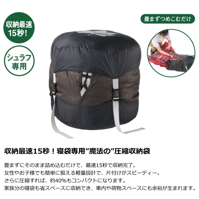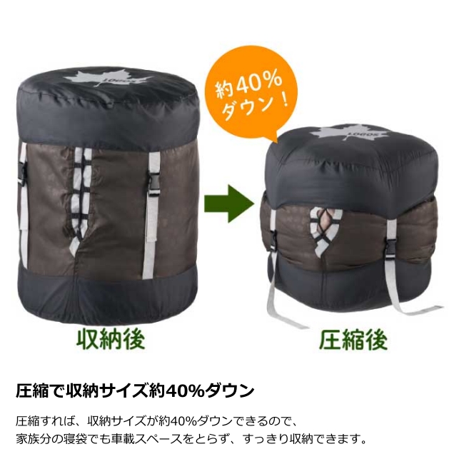 【ロゴス LOGOS 楽らく!つめこみシュラフバッグ L(-6〜0℃用)】収納最速15秒!寝袋専用”魔法の”圧縮収納袋。