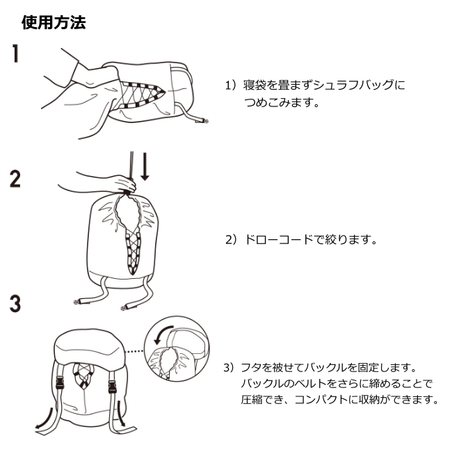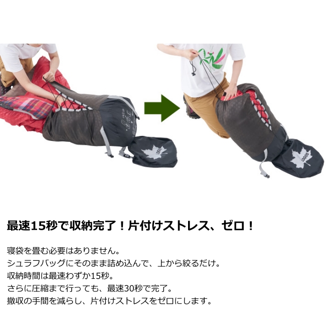 寝袋の収納をもっと手軽に。畳まずにそのまま詰め込むだけで、最速15秒で収納完了。