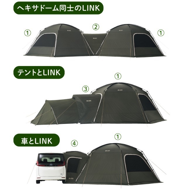 ・無限にLINKできるコネクトベースシリーズ!ベーステント同士をつなげるトンネルタープ。