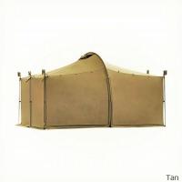 ※画像内に使用しております両サイドのポール(計6本)は別売りとなっております。トレッキングポールなどでも代用が可能ですが、シェルター本体のポール固定用のポケットのサイズとトレッキングポールのハンドルサイズが合うかご確認になられてからご使用ください。