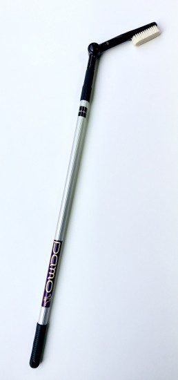 ブラシ部は天然白豚毛を使用したABS樹脂製、可変部はナイロン製、伸縮柄は新型アルミ製ポールです。