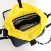 メインバッグの容量は6L。フラップを開けるとシルナイロン製の巾着トップ。内部には小物の収納に便利なサブポケットが設けられ、財布や鍵などを小分けにして収納できます。