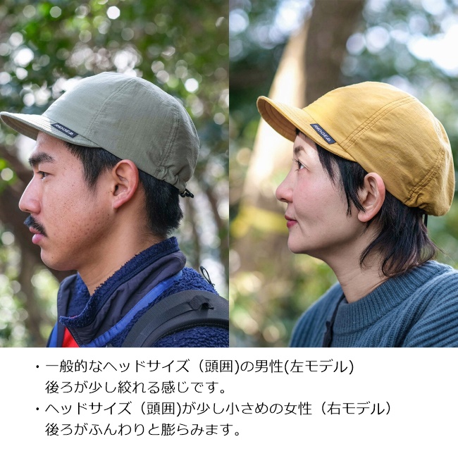 ヘッドサイズ(頭囲)は一般的なキャップに比べ多少ゆったり目です。