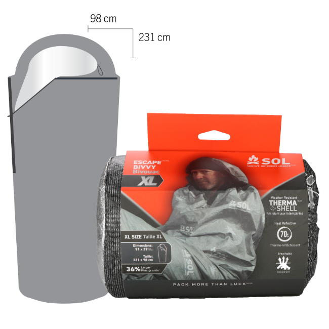 内側のアルミ蒸着加工により体熱の最大70%を反射・保持しながらも、独自の透湿素材により内部の湿気を外に逃がす従来の性能はそのままに約20%のサイズアップ。