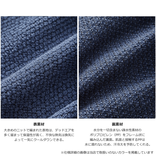 体にフィットする立体裁断で、やわらかなニットは換気時に素早くクールダウンします。