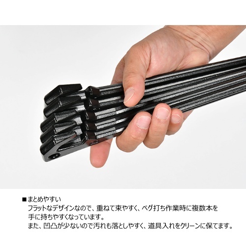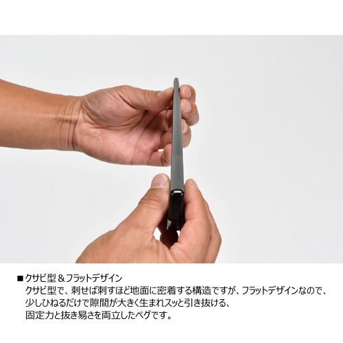 打ち込みやすさ・固定力・強度など、キャンプ用ペグの基本機能を徹底的に追求した、フラット&クサビ型の鍛造ペグ。