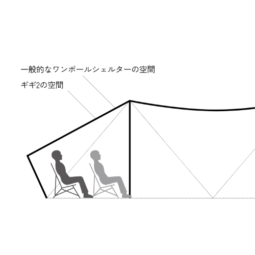 ギギ1の基本デザインをそのままに、ツーポール仕様に仕上げたラージサイズシェルター。