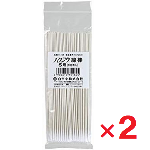 ハクジウ綿棒 5号 耳鼻科用 100本入 ×2個 白十字 紙軸 医療用