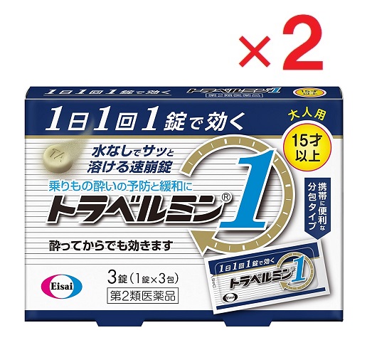 | 用法・用量 | 次の1回量を1日1回かむか、口中で溶かして服用してください。 ただし、乗物酔いの予防には乗車船30分前に服用してください。 年齢・・・1回量・・・1日服用回数 成人(15才以上)・・・1錠・・・1回 小児(15才未満)・・・服用しないこと |