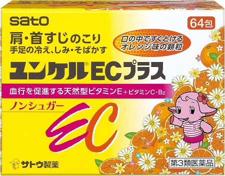 | 効能・効果 | ●末梢血行障害による次の諸症状の緩和:肩・首すじのこり、手足のしびれ・冷え、しもやけ ●次の諸症状の緩和:しみ、そばかす、日やけ・かぶれによる色素沈着 ●次の場合の出血予防:歯ぐきからの出血、鼻出血 「ただし、これらの症状について、1ヵ月ほど使用しても改善がみられない場合は、医師、薬剤師又は歯科医師に相談すること。」 ●次の場合のビタミンECの補給:肉体疲労時、病中病後の体力低下時、老年期 |