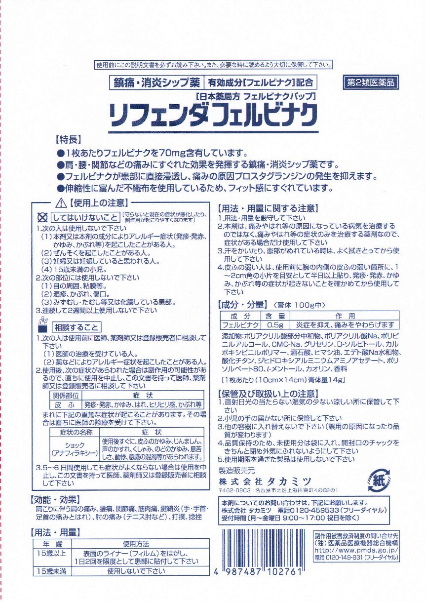 リフェンダフェルビナク 6枚入 ×5個 第2類医薬品