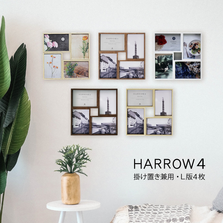 フォトフレーム 写真立て ハロウ4 - HARROW4 全5色 壁掛け スタンド 木製写真立て L判 複数枚 ギフト